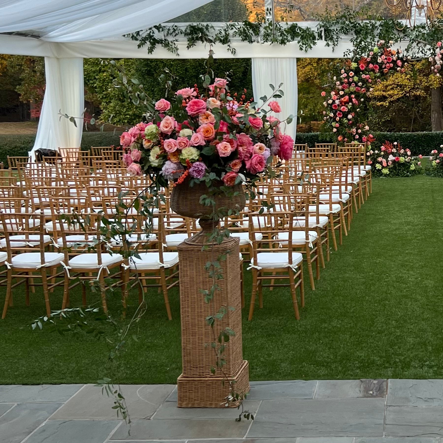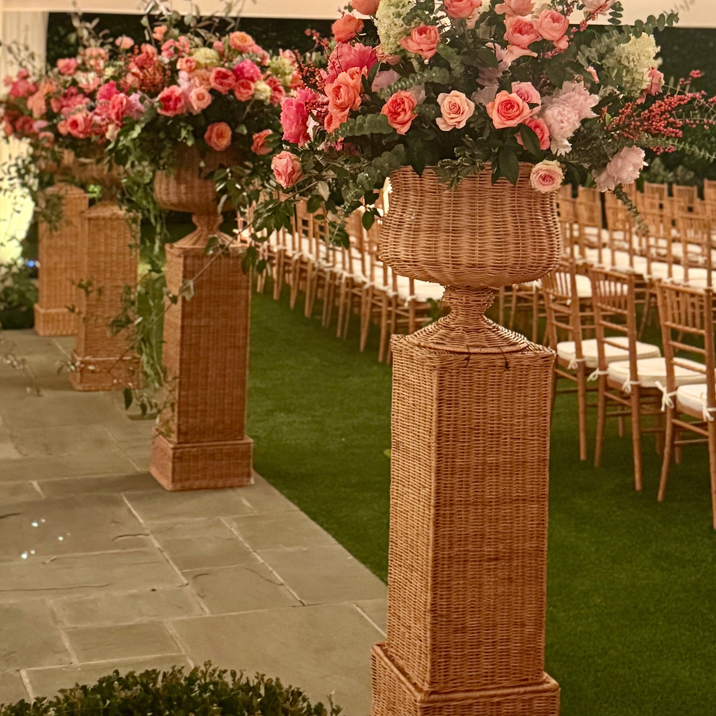 The Chesapeake Rattan Footed Urn is a beautiful addition to any interior designer's collection or specialty retailer's inventory. Made from Lesles rattan, it features a natural aesthetic that resembles traditional ceramic while offering exceptional durability. Its tall, generous dimensions create a striking focal point, whether displayed alone or filled with vibrant faux florals. Measuring 18 x 18 x 18 inches with a narrow base of 11.5 x 5.5 inches, this urn is ideal for entryways, covered porches, or as a statement piece in a foyer. The unique manufacturing process showcases the strength and flexibility of the rattan, ensuring long-lasting quality. Maintenance is simple‚ dust with a soft cloth to keep it looking pristine. The Chesapeake Rattan Footed Urn is not only decorative but also a versatile accent that enhances any design scheme, making it a must-have for discerning customers.
