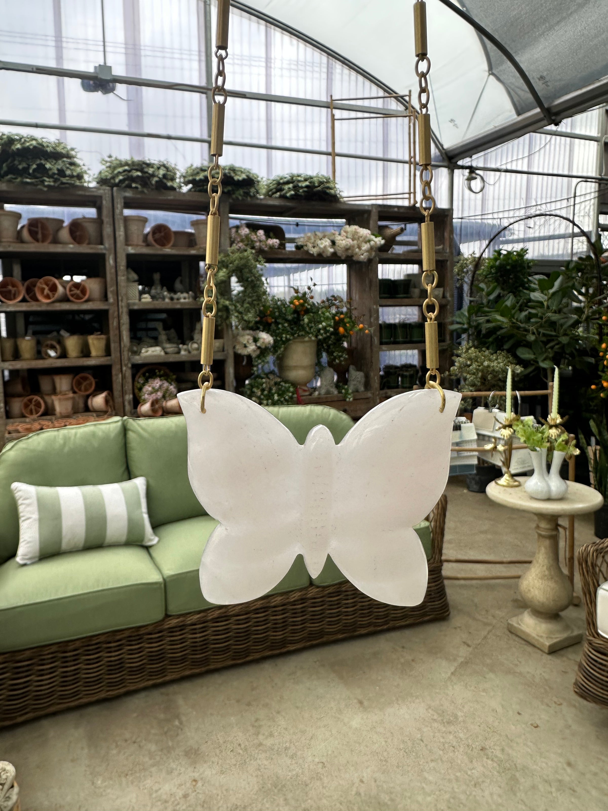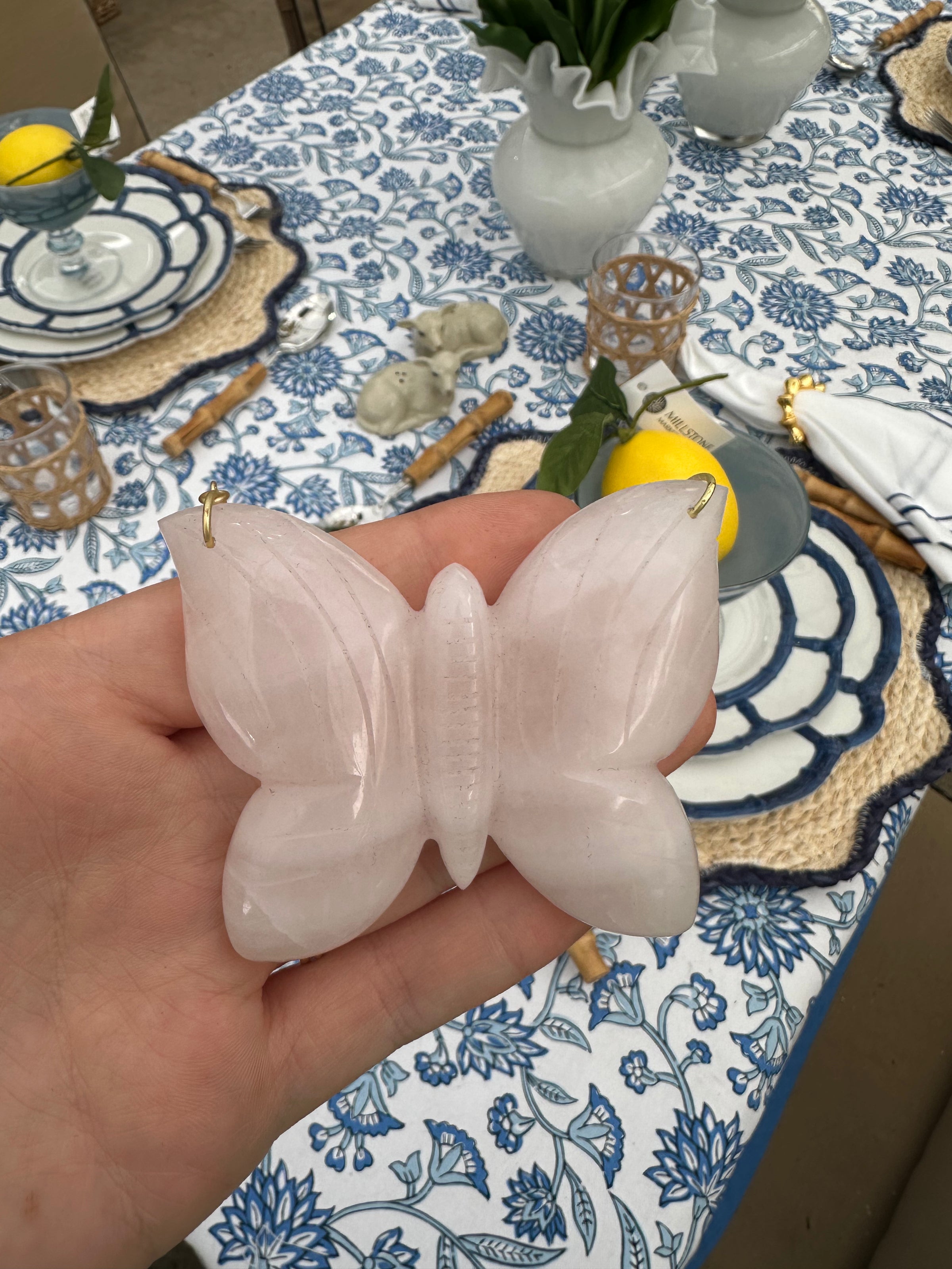 Handcrafted by a Memphis-based artist, this striking stone necklace features an intricately carved butterfly design. The piece showcases a beautiful blend of deep green and soft blush pink tones, creating a natural, organic aesthetic. Each necklace is uniquely carved, making it a one-of-a-kind wearable art piece. Perfect for those who appreciate artisanal craftsmanship and distinctive jewelry that tells a story.