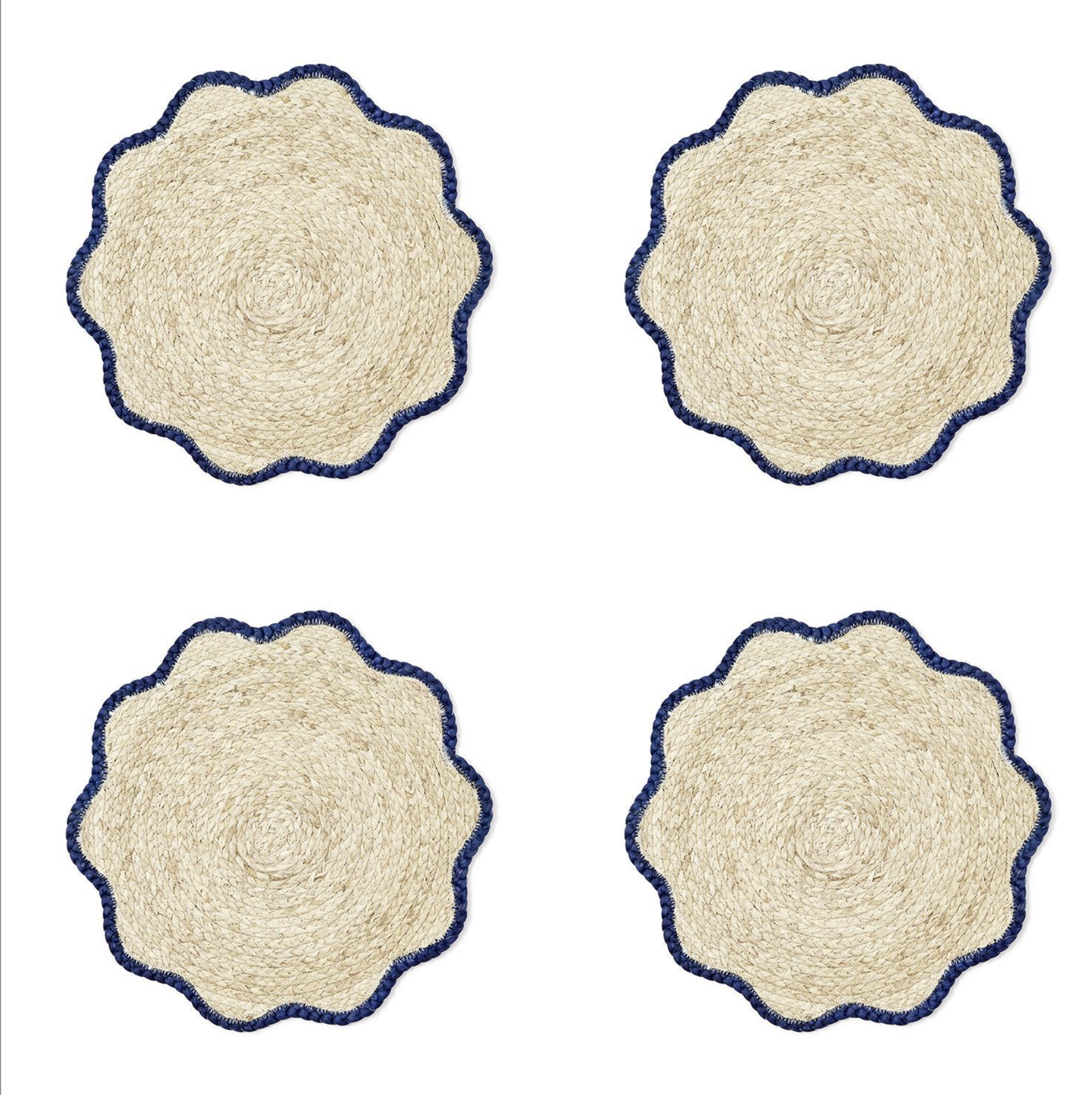 Elevate your dining experience with the Set of 4 Handwoven Scalloped Edge Placemats. Crafted from seagrass with exquisite handwoven details and a charming scalloped edge, these placemats bring a touch of coastal elegance to your table setting. Add charm to your meals and impress your guests with these beautiful placemats.