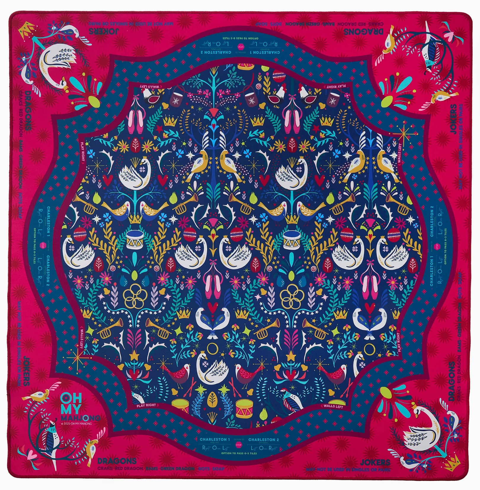 Step into the season with the Pear Tree Mat, a festive collaboration with Fort Worth-based fashion designer Sheridan French. Inspired by the beloved 12 Days of Christmas, this holiday edition features intricate illustrations of each iconic gift, from the partridge to the drummers, brought to life in rich winter tones of forest green, berry, and navy. The Pear Tree Mat was designed to capture the magic, nostalgia, and elegance of the holiday season, and is the perfect backdrop for cozy game nights and joyful gatherings.