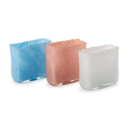Bring artisanal charm to your dècor with the Marbled Scalloped Vase in Pink, Blue, and White. Each hand-blown glass piece features a distinctive marbled pattern and scalloped rim, making it truly one of a kind. Perfect for showcasing fresh blooms or as a stand-alone statement piece.