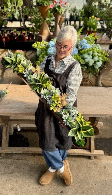 LONG COPPER TROUGH FAUX SUCCULENT ARRANGEMENT