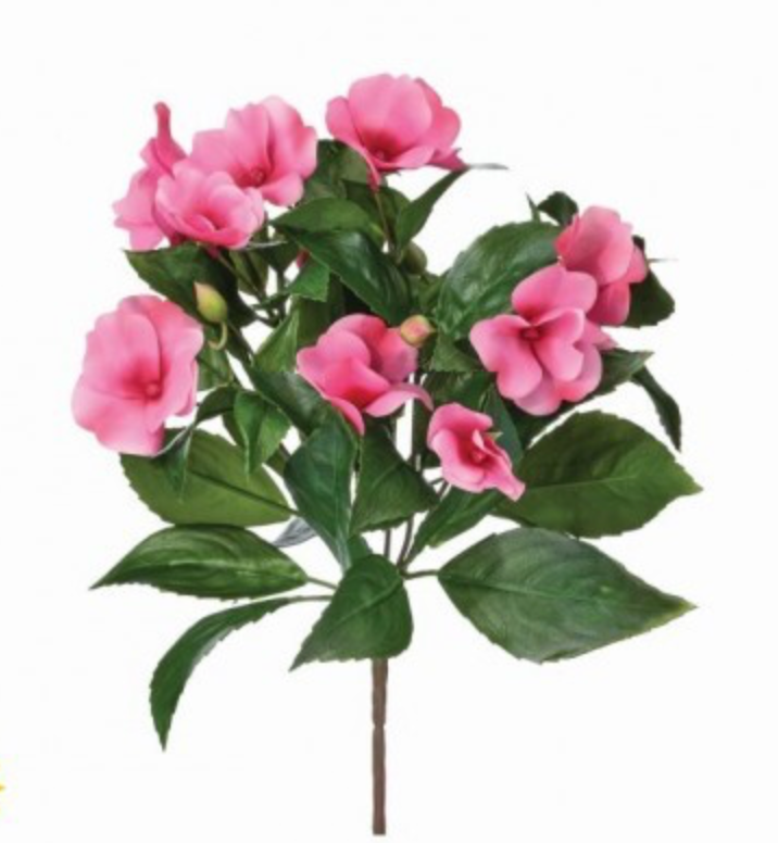 This stunning 10" New Guinea impatiens delivers vibrant floral beauty without seasonal limitations or care requirements. The meticulously crafted blooms and foliage replicate the authentic appearance of living impatiens while maintaining perfect color and form indefinitely. Ideal for indoor displays, shaded garden arrangements, and mixed floral compositions, this faux specimen eliminates watering schedules and light concerns. Perfect for designers and homeowners seeking reliable flowering solutions that perform consistently in any environment. Layer it with complementary botanicals, position it as a standalone accent, or integrate it into container gardens for professional-quality results. This versatile faux floral delivers enduring elegance and botanical authenticity that transforms spaces year-round without maintenance demands.